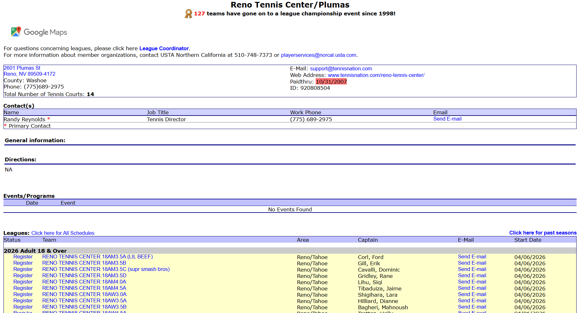 RenoTennis.org league directory page